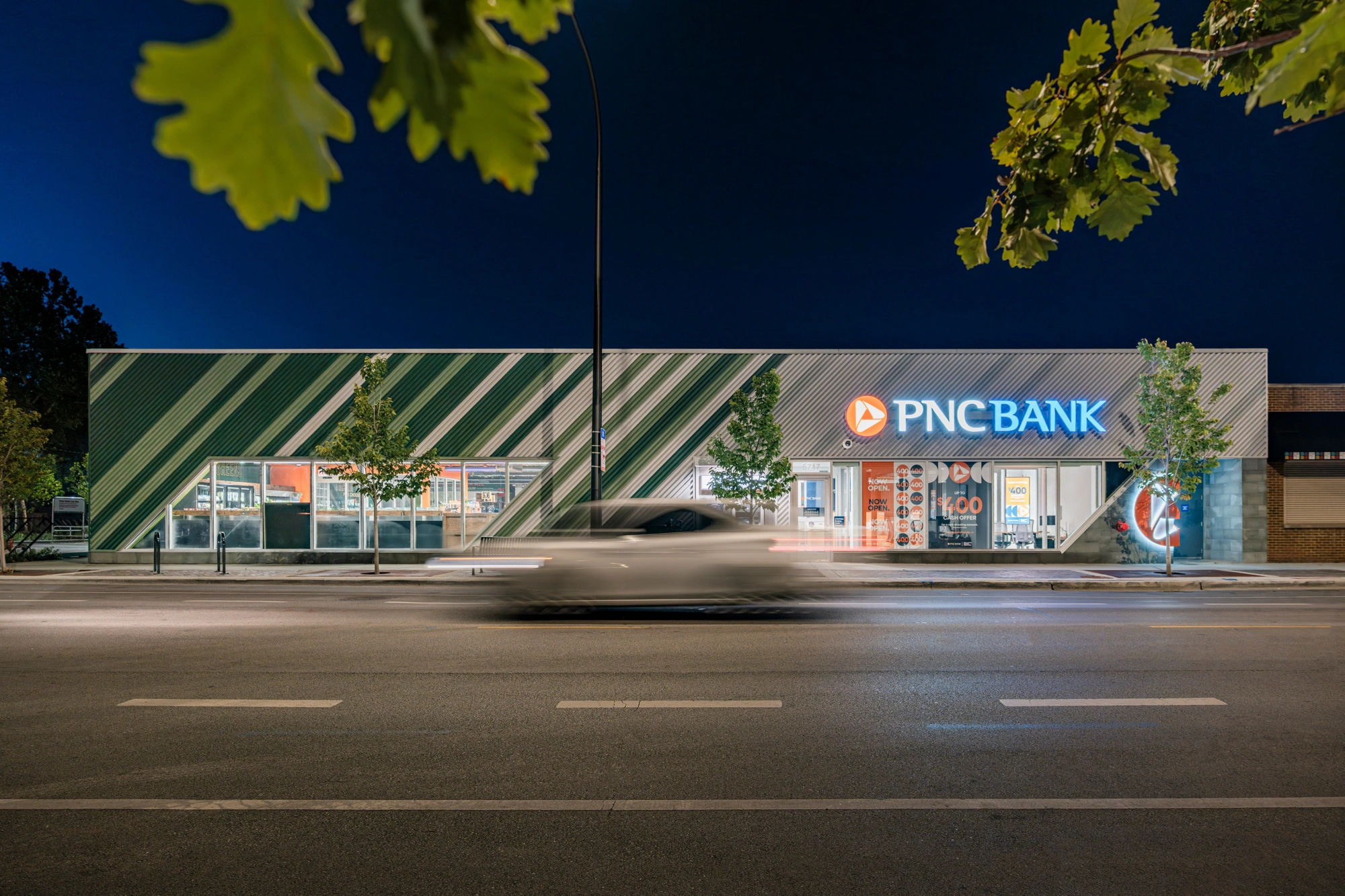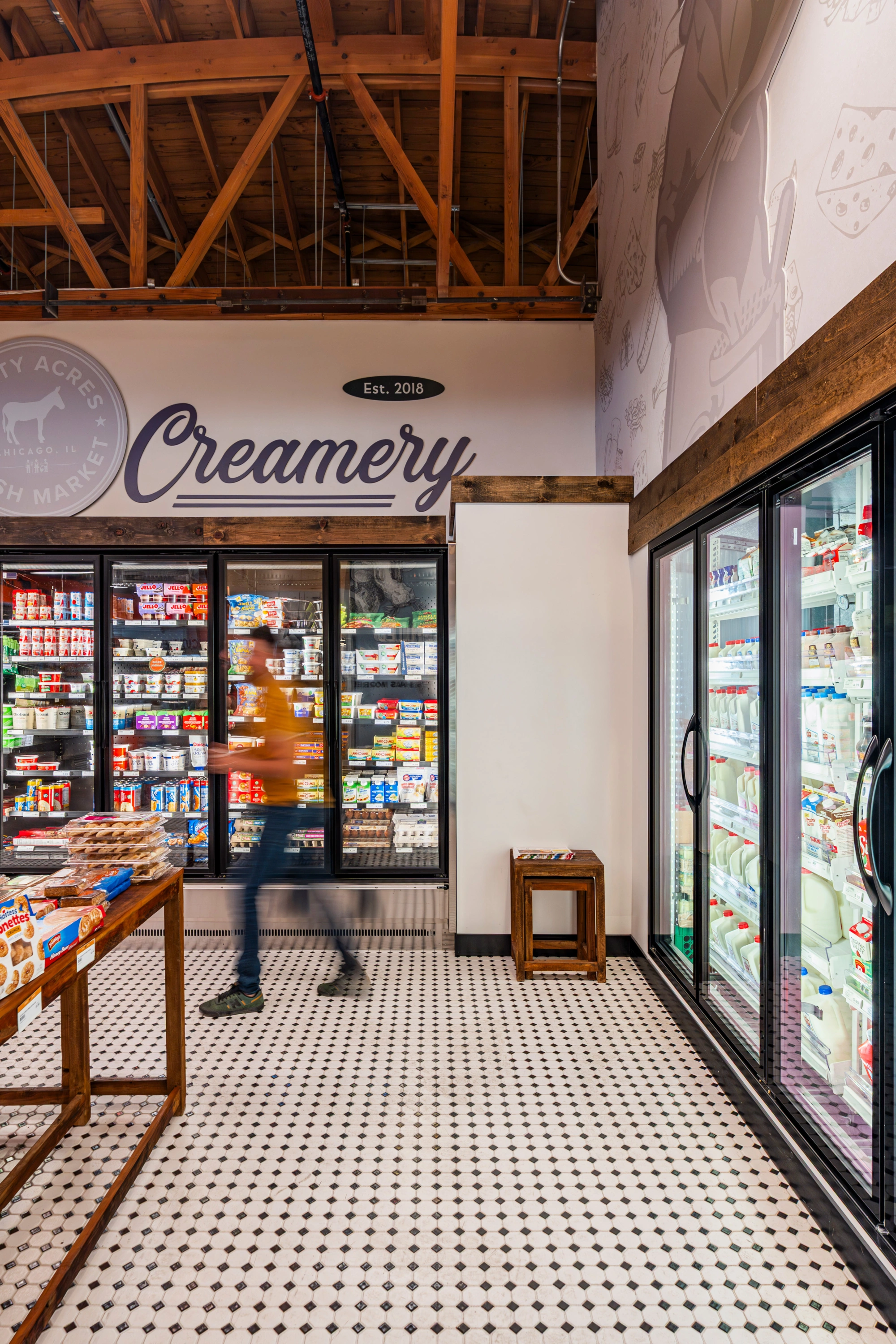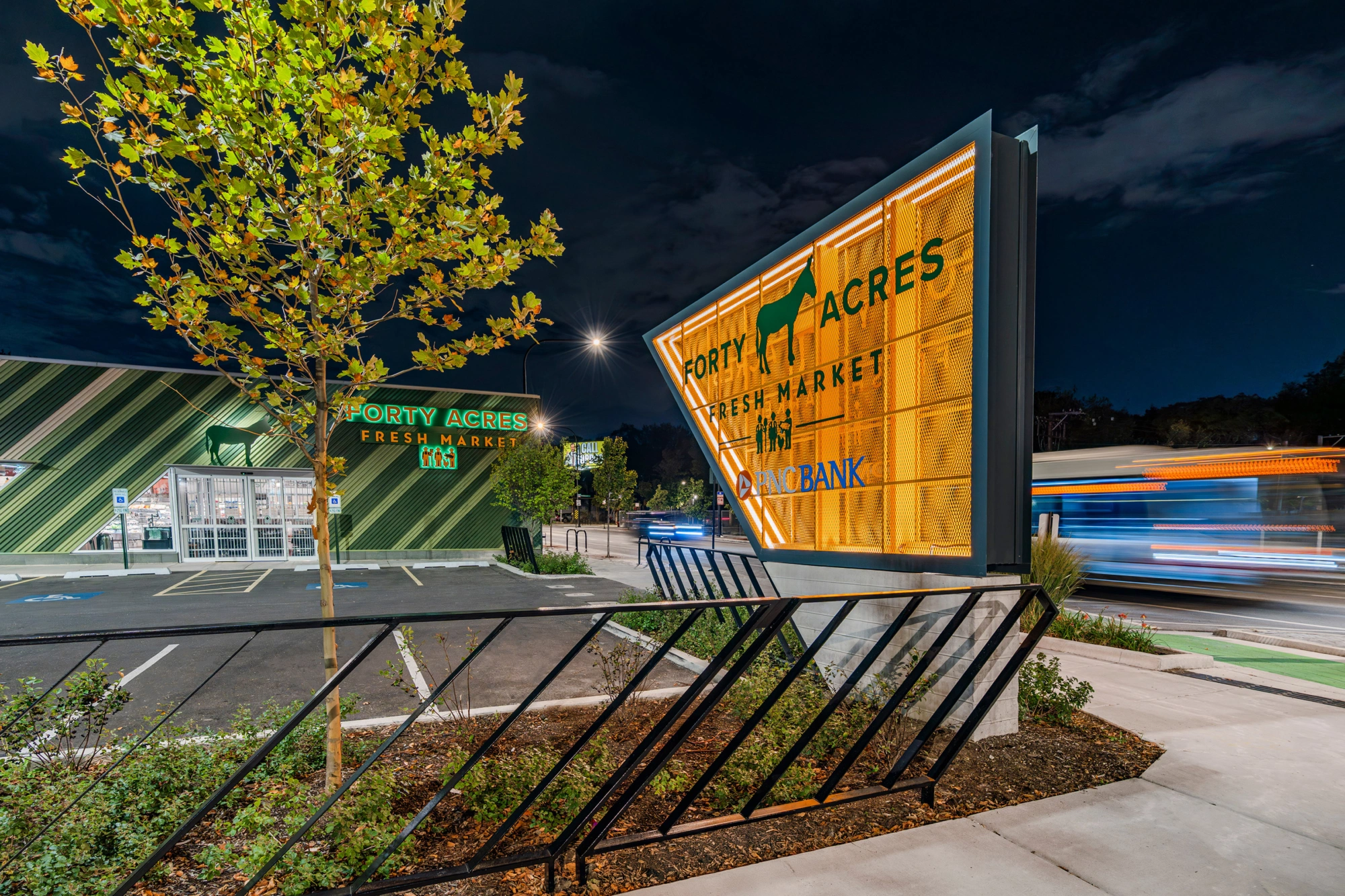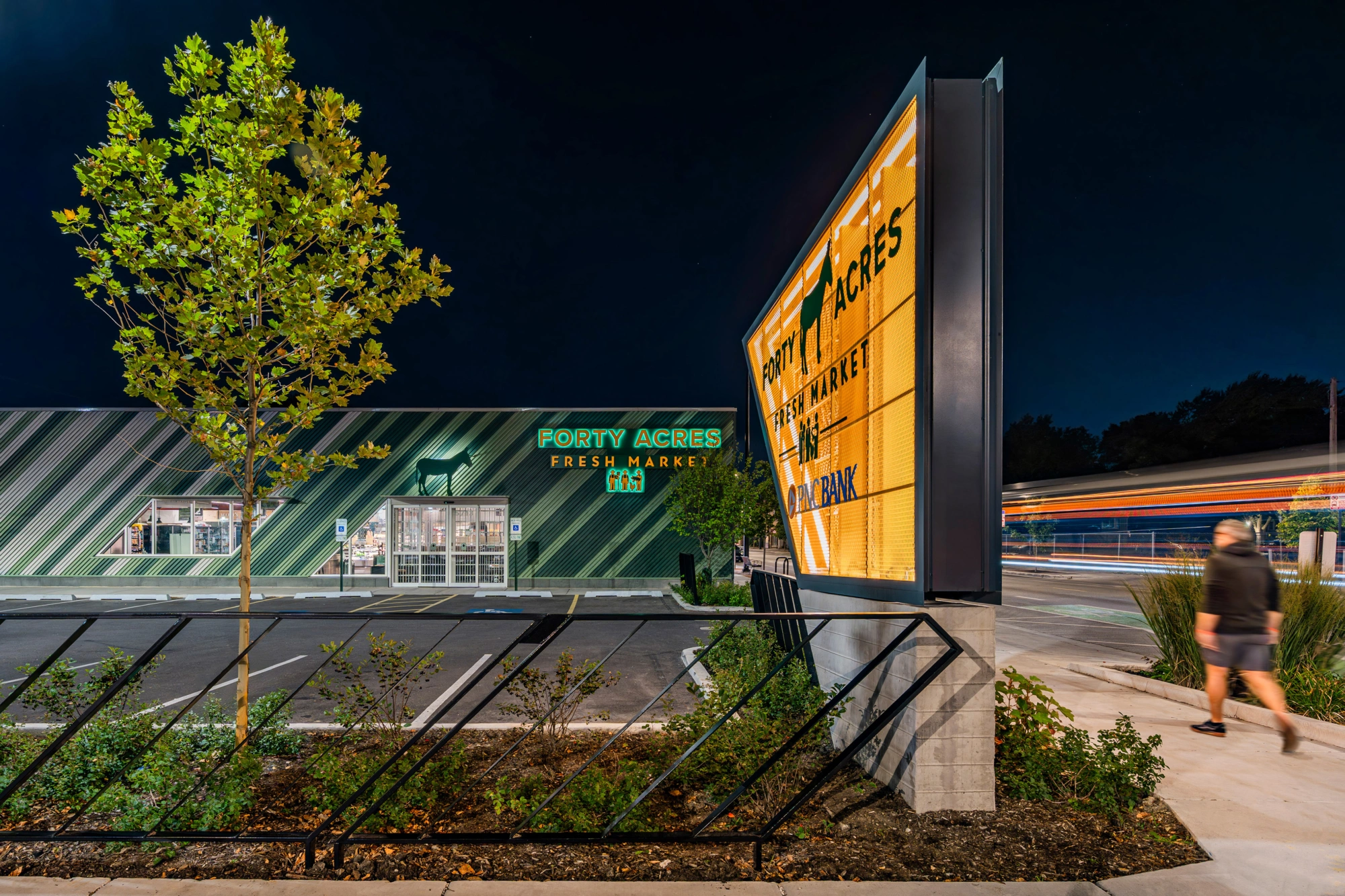 Serving Chicago’s Austin Neighborhood with fresh produce deliveries since 2018, Forty Acres Fresh Market acquired a former Salvation Army on Chicago Avenue to expand its operations into a full-fledged grocery store. Latent worked with Liz owner of FAFM + their community development partner West Side Health Authority to design the new grocery store with a featured Bank tenant space that was ultimately filled by PNC.