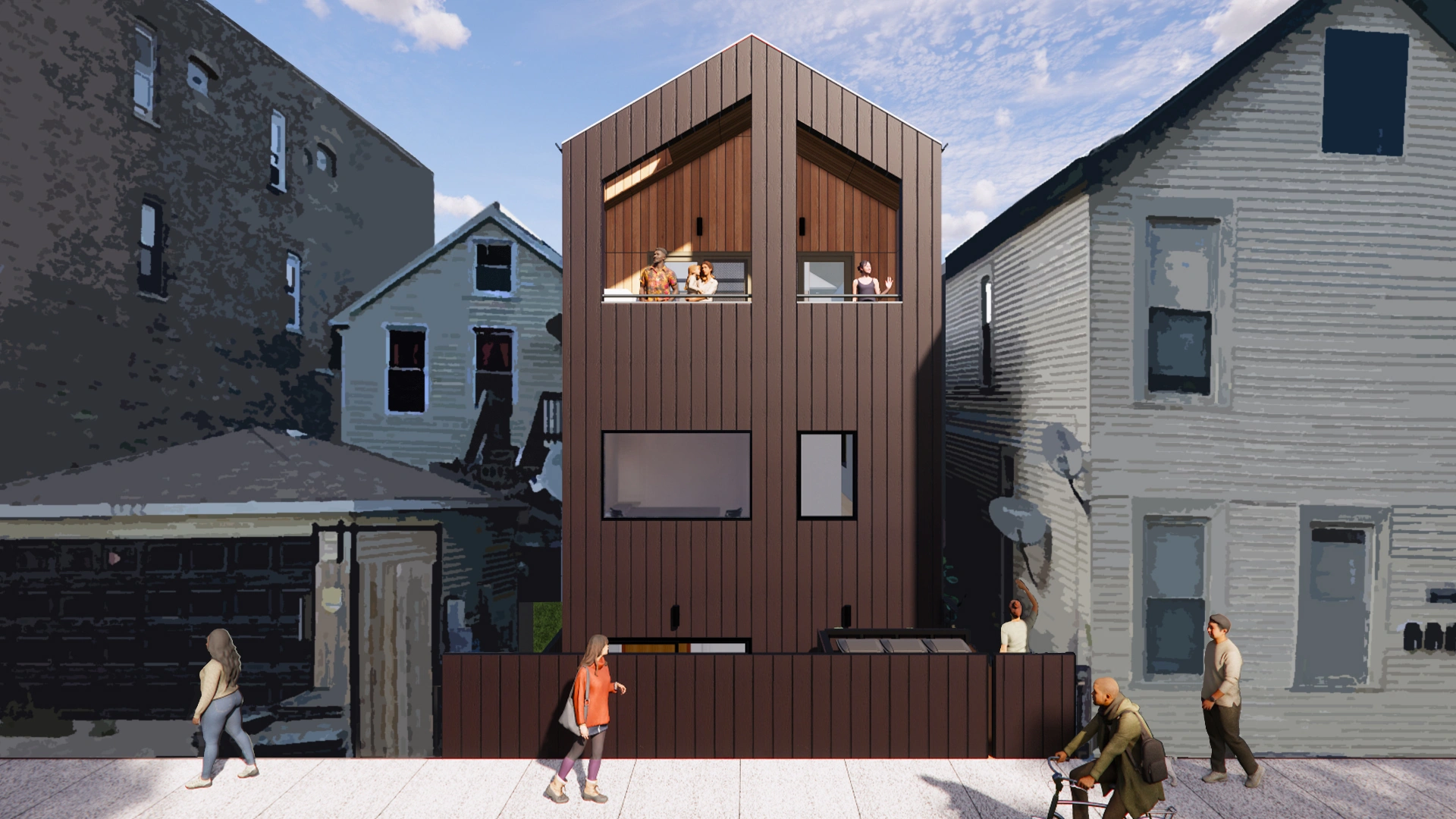 3ft setbacks on the 25ft lot left 19ft to work with and a fixed length matching the existing building which was demolished.