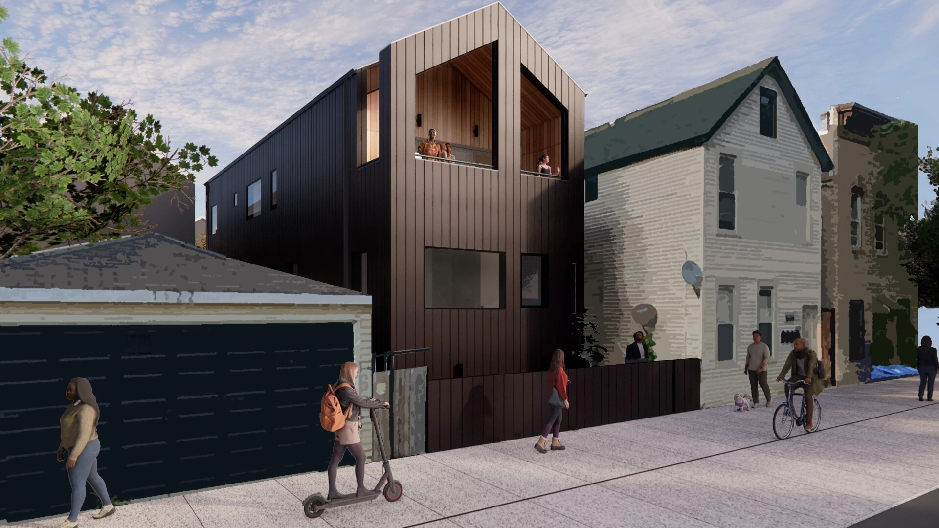 This project works within the footprint of the existing structure creating a series of bespoke exterior spaces throughout the site. This block does not have an alley which allows for a private landscape rear yard. Aligning with the existing footprint the structure is set back from the sidewalk forming a sunken court facing south off the primary bedroom. We studied multiple scenarios including split front and rear Townhouse style, and multiple variations of Garden / Duplex prioritizing living spaces oriented south towards the street vs. north towards the rear yard. The final layout minimized circulation while providing each unit with a unique outdoor amenity.